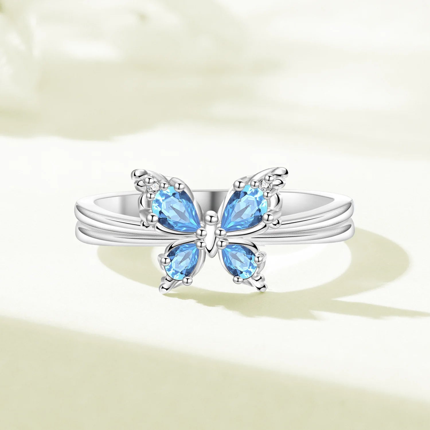 A delicate symbol of transformation and grace, this ring captures the fleeting beauty of a butterfly in motion. The soft blue hues shimmer with every movement, evoking the calm of open skies and the freedom of gentle flight. Elegant and timeless, it’s a piece that speaks to the dreamer, the wanderer, and the one who finds magic in the smallest moments.