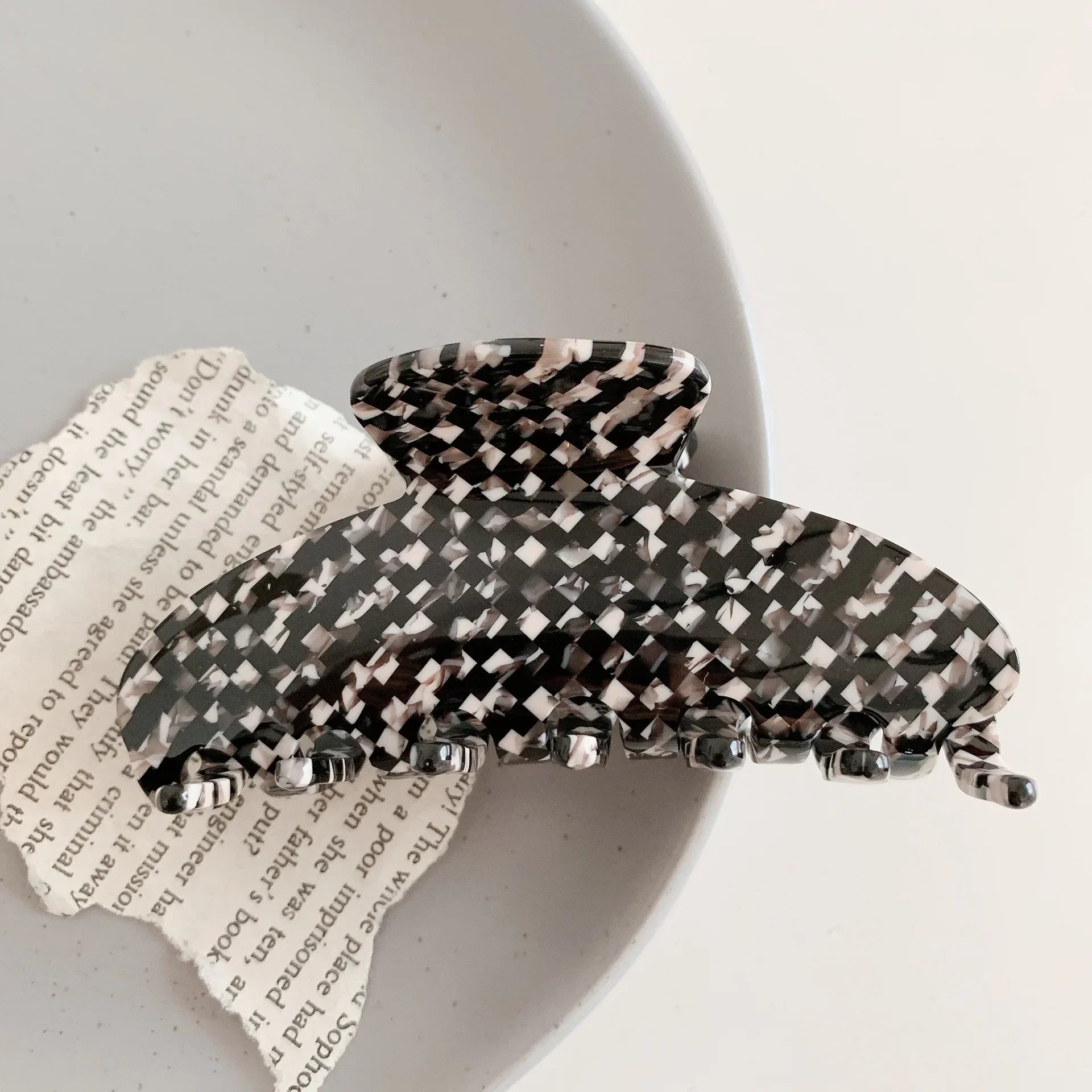 Elevate your hairstyle with the Parisian Hair Claw Clip, a perfect blend of vintage charm and modern sophistication. Designed with a stylish grid stripe and delicate floral accents, this clip adds a touch of effortless elegance to any look. Whether you're styling a casual updo or a polished evening ensemble, its secure hold and timeless design make it a must-have accessory. Perfect for women and girls who love a classic yet trendy touch, this hair claw is your go-to for everyday glam.