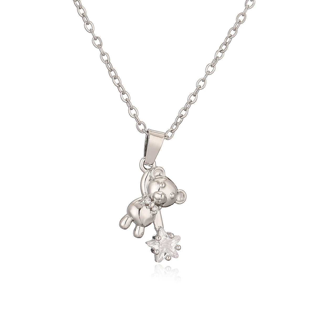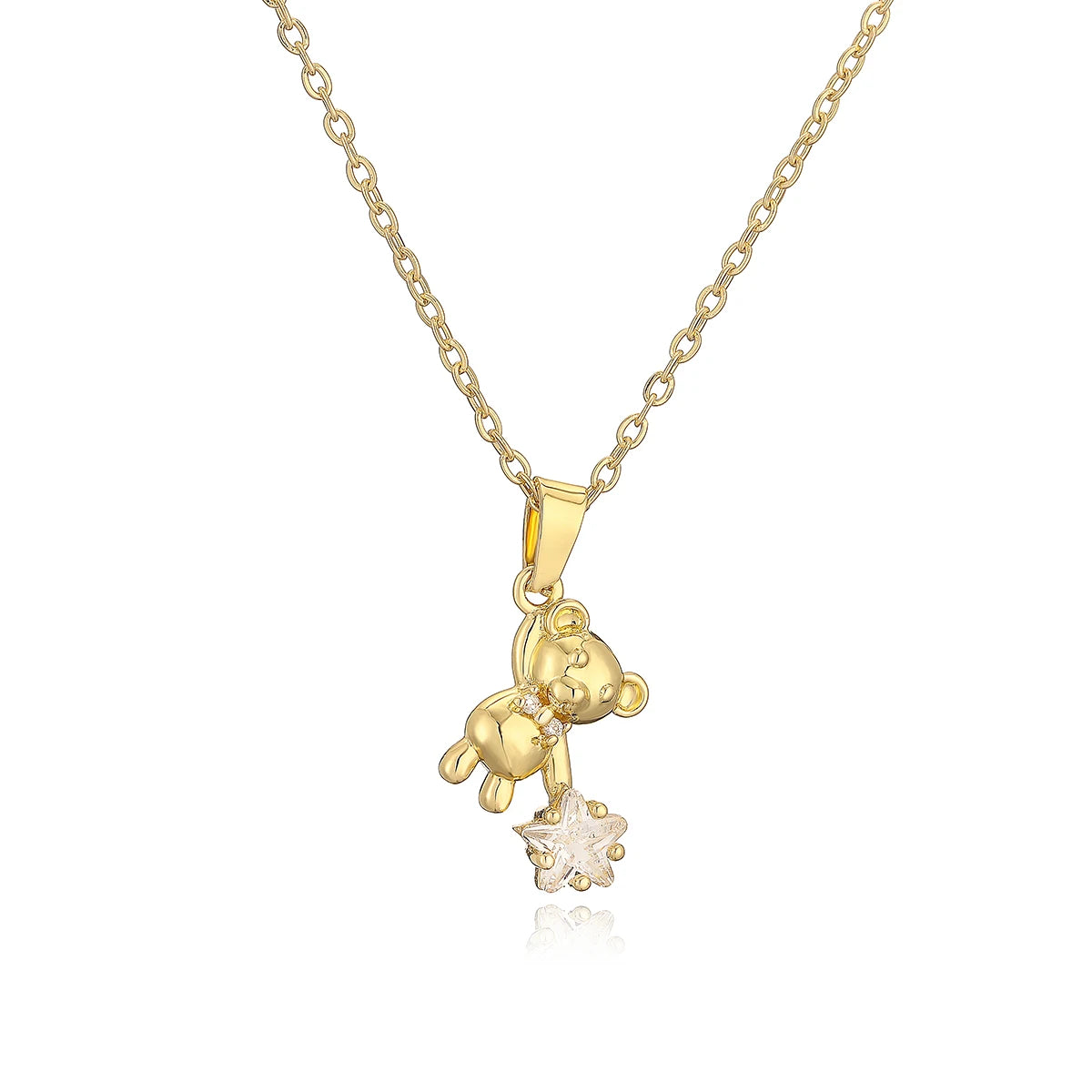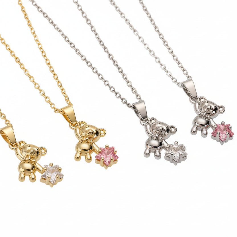 A charming teddy bear pendant holding a sparkling heart, designed to add a touch of sweetness to your everyday look. This necklace blends playful elegance with soft, romantic details, making it perfect for layering or wearing on its own. Cute yet refined, it’s the kind of piece that feels sentimental, stylish, and effortlessly eye-catching—ideal for gifting or treating yourself.